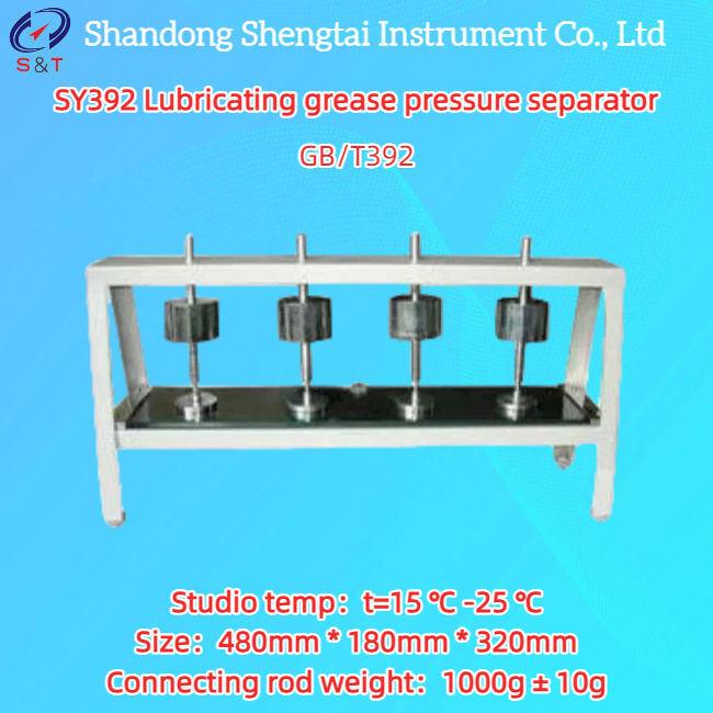 Le séparateur de pression de graisse SY392 est conçu et fabriqué selon la norme GB/T392. Cet instrument utilise un séparateur d'huile sous pression pour extraire l'huile de la graisse lubrifiante, puis mesure la quantité d'huile extraite. Nécessite une température ambiante de 15-25 ℃. Machine à quatre positions, température de l'environnement de travail t=15-25 ℃, poids 1000g ± 10g.