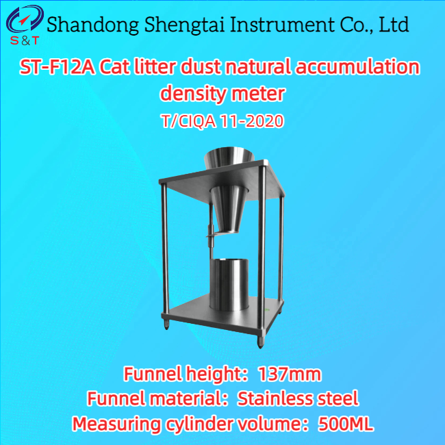 The ST-F12A cat litter dust natural accumulation density meter is designed and manufactured according to T/CIQA 11-2020 "Tofu Cat litter Specification", mainly suitable for measuring the dust accumulation density of cat litter.