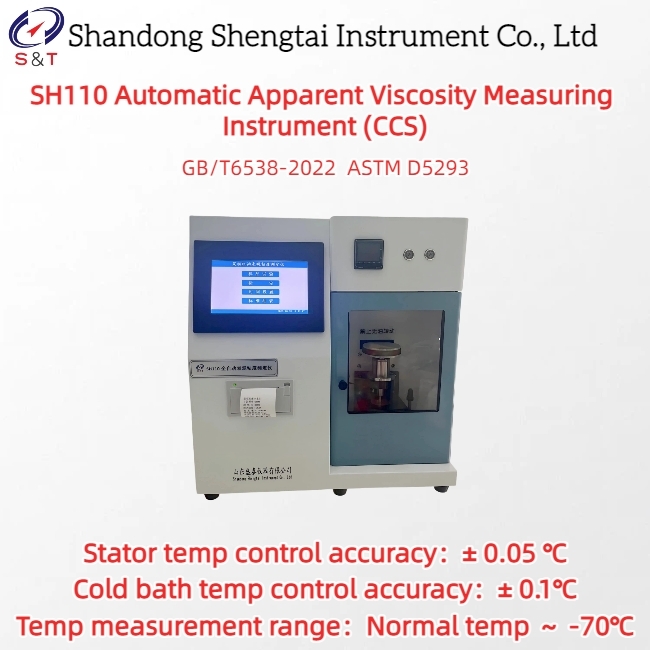 Le compteur automatique de viscosité apparente (CCS) SH110 est conforme aux spécifications techniques GB/T6538-2022, ASTM D5293 et autres;Il convient aux essais de l'indice de viscosité dynamique à basse température de l'huile moteur.L'instrument peut mesurer la viscosité apparente de l'huile à des températures allant de -35°C à -5°C avec un intervalle de 5°CIl présente les avantages d'une mesure précise, d'une bonne répétabilité, d'une performance stable et d'un fonctionnement simple.